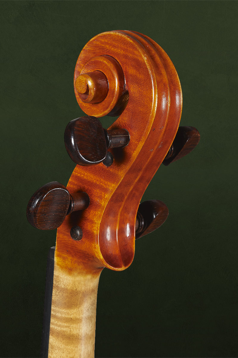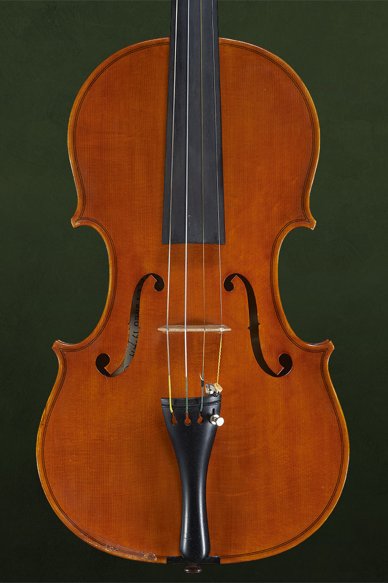 Questo violino è un esempio classico del suo periodo migliore. Lo strumento è di ottima fattura e conservato in perfette condizioni, originale in tutte le sue parti ed accompagnato da certificato.